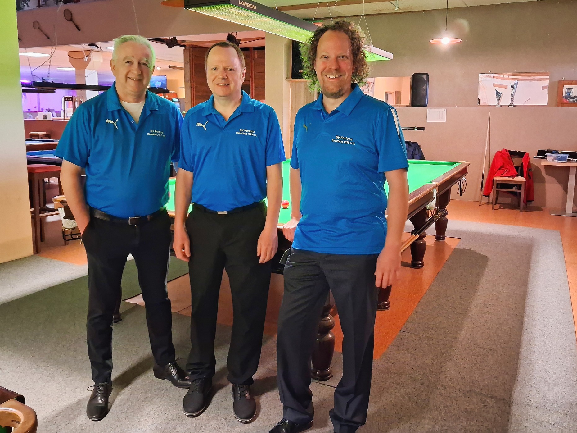 BBV Snooker Pokalmannschaft Mannschaftsmitglieder von links nach rechts: Gerhard Nanik Klaus Hermann Aaron Zielke zur nuLiga
